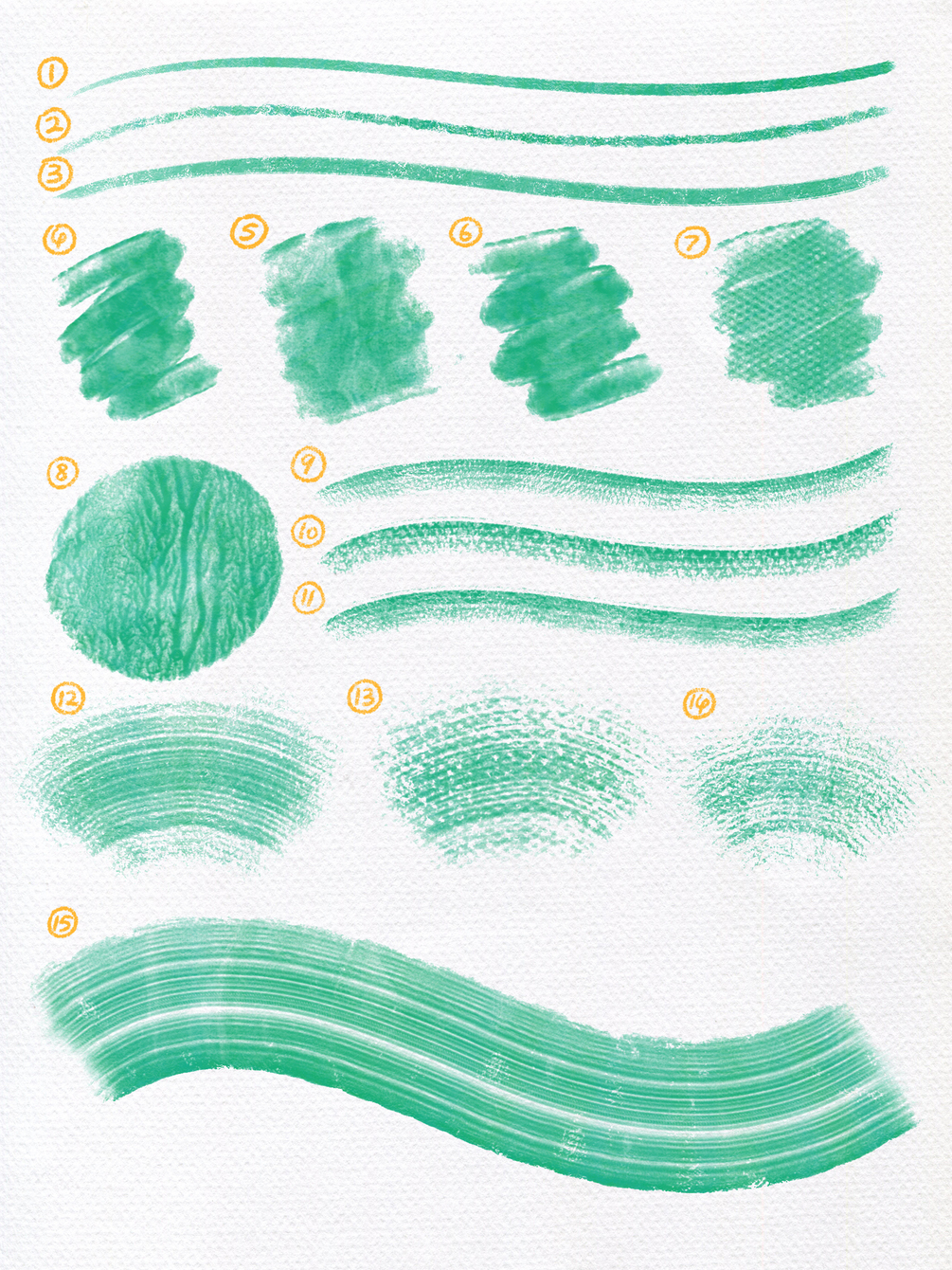 You'll get 30 gouache style brushes each of photoshop & procreate.